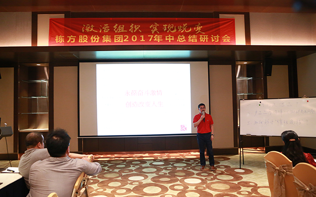 2017年7月30日至31日,“激活組織、實現(xiàn)蛻變、重寫未來——棟方股份集團2017年中總結(jié)研討會”在廣州白水寨嘉華溫泉酒店順利召開。棟方股份集團董事長唐新明先生、集團產(chǎn)業(yè)鏈投資管理公司總經(jīng)理方珉先生、公司高層領導、各子公司領導,以及公司中層管理人員悉數(shù)出席會議。上午9時會議正式開始,本次研討會由人事行政中心副總監(jiān)周金桃主持,棟方股份集團董事長唐新明先生作開場致辭。